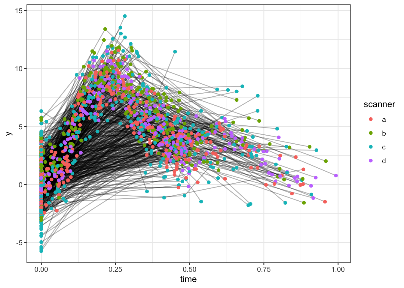 ggplot(dat, aes(x = time, y = y, group = id)) +